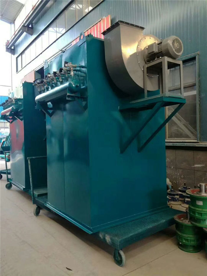 該設備為多袋式脈沖除塵裝置,當含塵氣體由進風口進入除塵器,首先碰到進出風口中間的斜板及擋板,氣流便轉向流入灰斗,同時氣流速度放慢,由于慣性作用,使氣體中粗顆粒粉塵直接流入灰斗。起預收塵的作用,進入灰斗的氣流隨后折而向上通過內部裝有金屬骨架的濾袋粉塵被捕集在濾袋的外表面,凈化后的氣體進入濾袋室上部清潔室,匯集到出風口排出,含塵氣體通過濾袋凈化的過程中,隨著時間的增加而積附在濾袋上的粉塵越來越多,增加濾袋阻力,致使處理風量逐漸減少,為正常工作,要控制阻力在一定范圍內(140--170毫米水柱),必須對濾袋進行清灰,清灰時由脈沖控制儀順序觸發各控制閥開啟脈沖閥,氣包內的壓縮空氣由噴吹管各孔經文氏管噴射到各相應的濾袋內,濾袋瞬間急劇膨脹,使積附在濾袋表面的粉塵脫落,濾袋得到再生。清下粉塵落入灰斗,經排灰系統排出機體。由此使積附在濾袋上的粉塵周期地脈沖噴吹清灰,使凈化氣體正常通過,保證除塵系統運行。